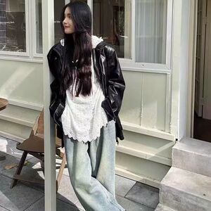 高级蕾丝中长打底衫气质钩花针织衫连帽长袖2025春秋新款宽松上衣