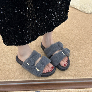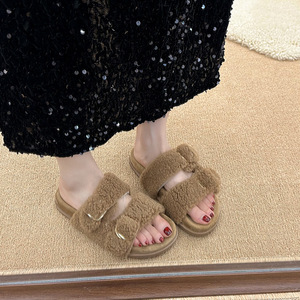 厚底毛毛拖鞋女外穿2025新款秋冬季时尚一字不累脚毛绒棉拖毛毛鞋