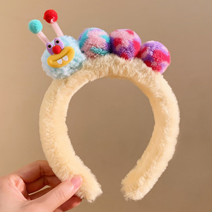 搞怪龅牙毛毛虫毛绒发箍女高级感可爱百搭头饰洗脸头箍秋冬发卡