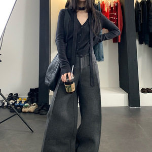 山羊绒挂脖针织开衫女秋季飘带V领显瘦高级小众长袖毛衣外套