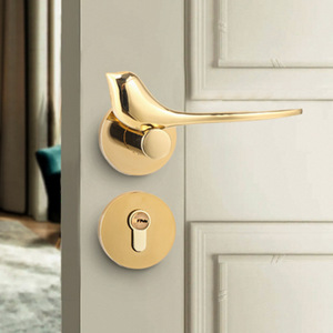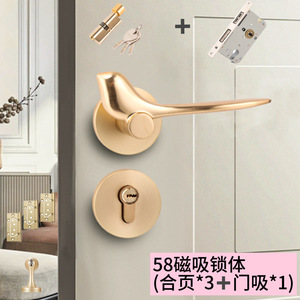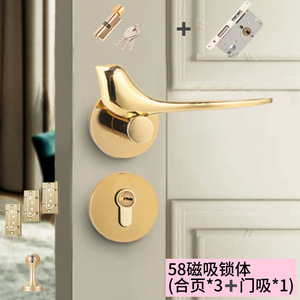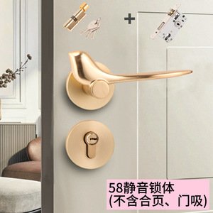 小鸟分体锁室内卧室门锁金色现代轻奢磁吸静音门把手家用房门锁具