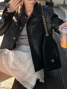 im向 甜酷旋律~PU皮正肩翻领显瘦高级感短款机车黑色皮衣外套女