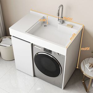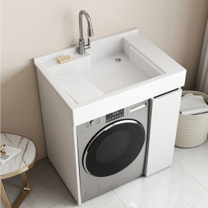 小户型阳台洗衣柜一体机上台盆滚筒洗衣机柜带搓板卫生间浴室柜