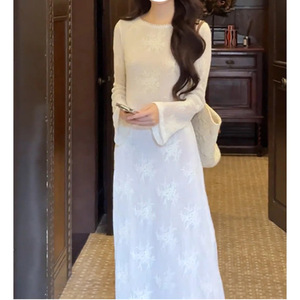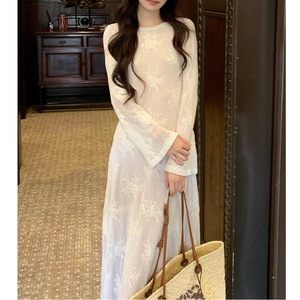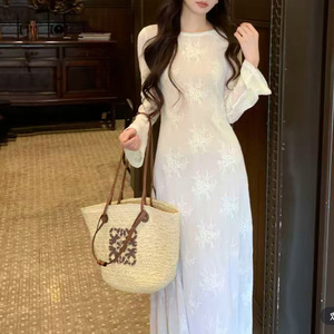 【缪斯印记】重工绣花收腰连衣裙女2025秋季新品气质长袖长裙子潮