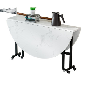 折叠餐桌带轮家用小户型可移动大圆桌多功能客厅吃饭桌子可折叠厂