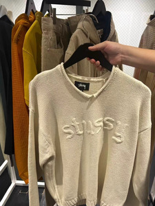 25S斯图STU新款针织衫弧形字母提花毛衣男女同款毛衣情侣百搭长袖