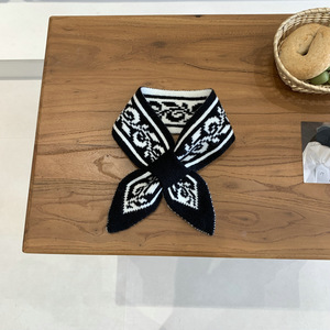 英伦文艺范百搭气质花卉提花设计感围巾双面可佩戴保暖秋季小围脖