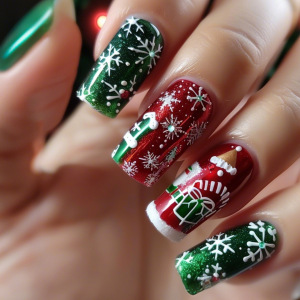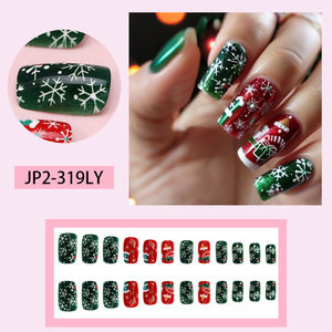 跨境美甲甲片穿戴式圣诞节穿戴甲红色圣诞礼物雪花24片假指甲贴片