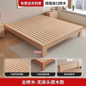 榉木实木床现代简约1.8米双人单人床1.5家用出租屋榻榻米简易床架