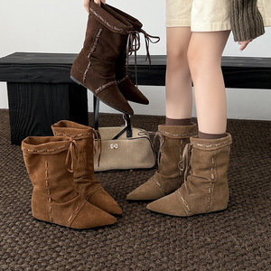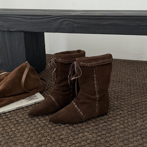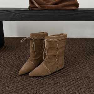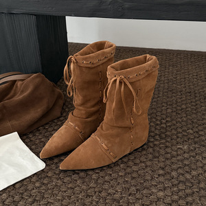 MARCO&JOYCE2025秋冬韩版靴子时尚内套筒短靴尖头宽筒及踝靴