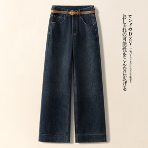 杏色九分阔腿牛仔裤女早秋2025今年流行爆款小个子显瘦窄版直筒裤