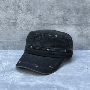 黑色-牛仔破洞平顶帽