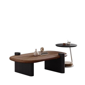 2025新款中古风椭圆形茶几客厅家用小户型实木茶几轻奢高级感复古