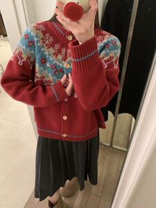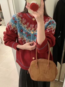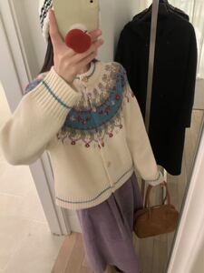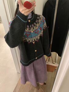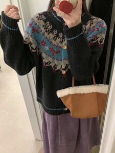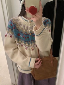 费尔岛提花手工刺绣毛衣外套秋冬新款宽松百搭针织开衫上衣女1298