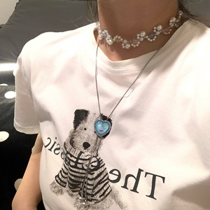 复古奢华vintage马卡龙彩色爱心珍珠项链女锁骨链轻奢choker颈链