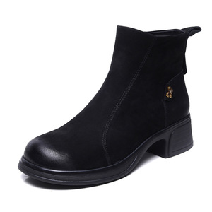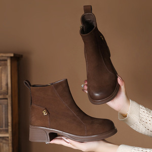 头层小牛皮复古马丁靴女2025新款百搭秋冬时尚平底软底女士短靴子