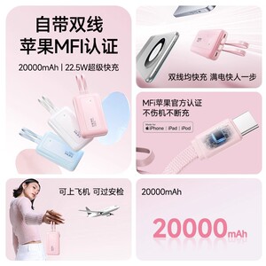 【3C认证】优者自带线充电宝大容量PD超级快充小巧便携迷移动电源