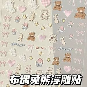 晚安珍妮布偶兔熊可爱卡通美甲贴纸浮雕立体diy指甲手机壳相机贴