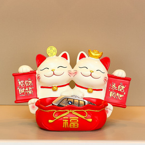 新款双猫收纳置物架玄关家居摆件永结同心布置新房装饰品新婚礼品