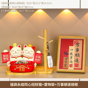福袋招财猫+置物架+相框+水晶发财树套装【一】