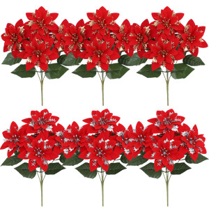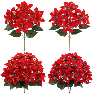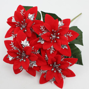 亚马逊仿真花圣诞花一品红假花家居装饰摆件节日布置户外绿植批发