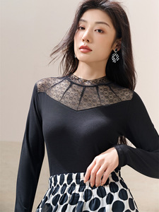 蕾丝打底衫女洋气内搭2025秋冬新款小衫网纱拼接高级感上衣小众