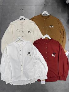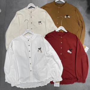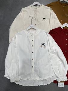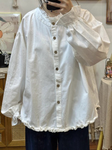 2025秋季木耳边别致立领休闲衬衣甜美复古文艺小个子百搭宽松衬衫