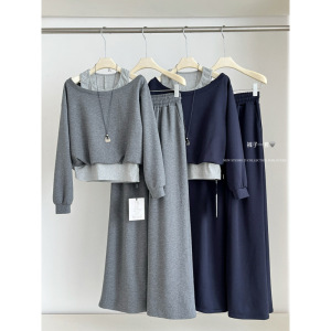 塞纳韩系时尚百搭休闲假两件卫衣松紧腰显瘦阔腿裤显瘦套装