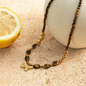 万兴欧美虎眼石蝴蝶项链配饰女18K 金不锈钢首饰跨境饰品小众设计