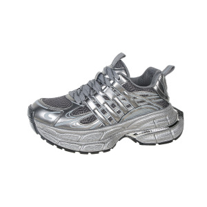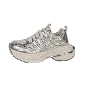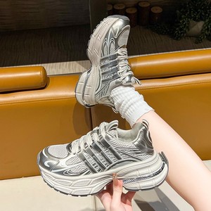 真皮老爹鞋女款2025春季新款百搭透气网面松糕厚底女鞋休闲运动鞋