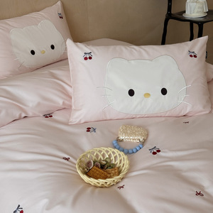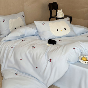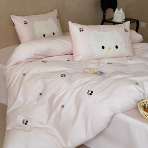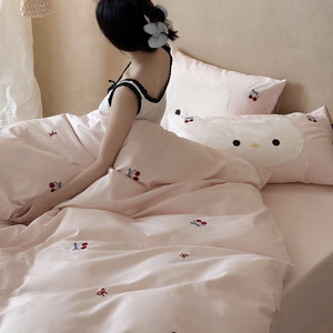 100S高支全棉磨毛四件套女孩刺绣樱桃秋冬天保暖加厚纯棉床上用品