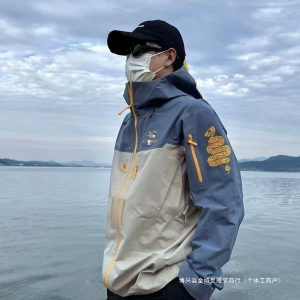 25始某鸟蛇年限定黄金刺绣三门鸟全缝压胶溢胶硬壳连帽情侣冲锋衣