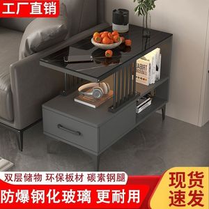 沙发边柜玻璃边几角几客厅轻奢现代简约移动小茶几侧边桌储物柜