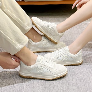 25春夏季新款欧洲站G家真皮板鞋女平底小白鞋系带情侣休闲小脏鞋