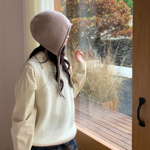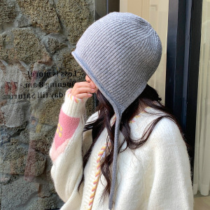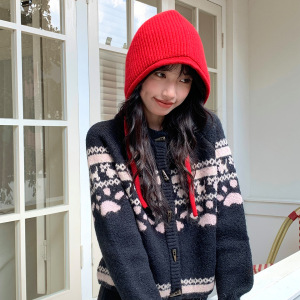 多巴胺纯羊毛针织帽子女秋冬新款韩版保暖可爱毛线帽辫子护耳帽潮