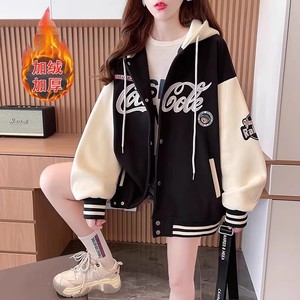 黑色加绒款【洋气时尚棒球服韩版宽松休闲卫衣】