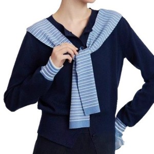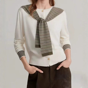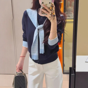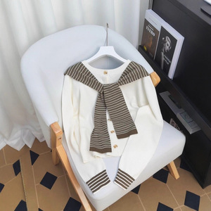 韩系针织衫女早秋穿搭2025撞色条纹宽松百搭外搭条纹披肩两件套
