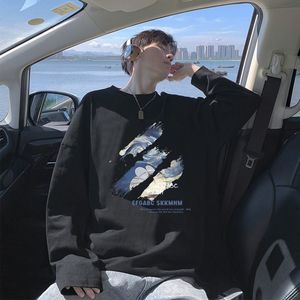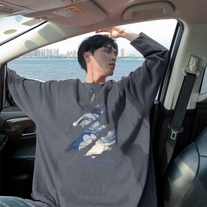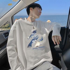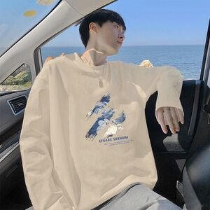 2025春秋季新款100%纯棉重磅t恤男潮流宽松百搭帅气港风长袖上衣