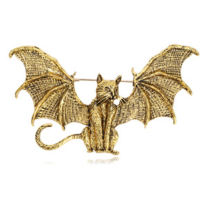 跨境复古飞猫蝙蝠猫胸针夸张个性外贸小妖怪猫咪动物胸花服装配饰