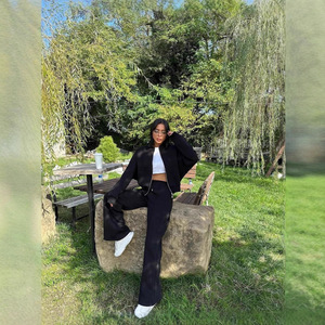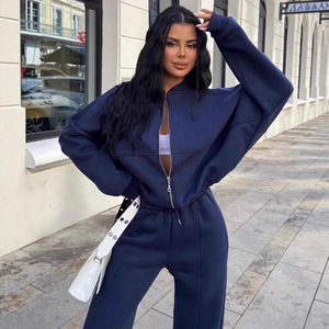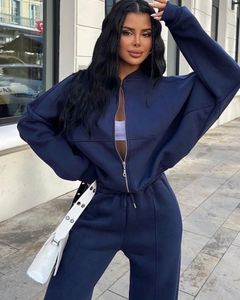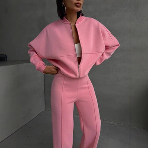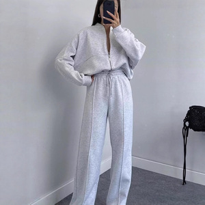2025秋冬新款跨境欧美纯色拉链开衫卫衣女装时尚休闲直筒裤套装