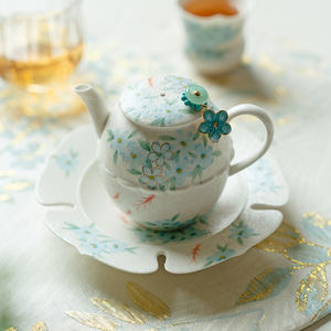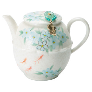 岩矿白纯手绘蓝星花-井缸壶(带提溜)