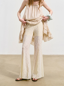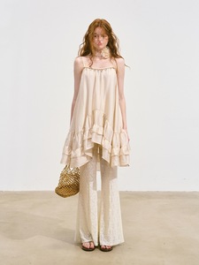 SOMESOWE设计感套装女夏吊带荷叶边上衣提花微喇长裤巨好看两件套