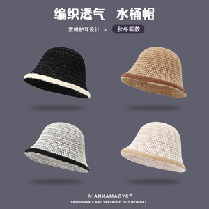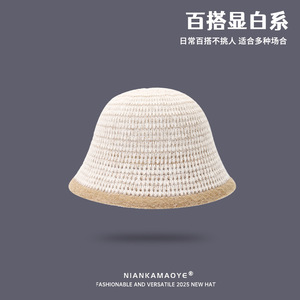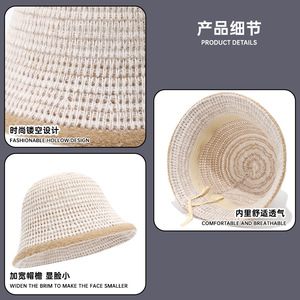 春夏季户外透气出游宽檐带防风绳渔夫帽纯色防晒渔夫帽子秋季盆帽