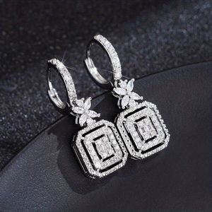 跨境新款满钻铜镶锆石花朵耳扣女 高级感洋气轻奢耳环耳饰品批发