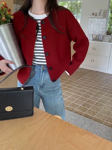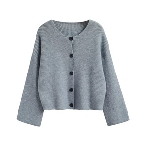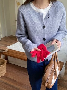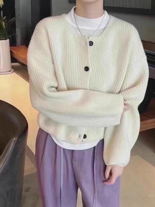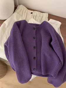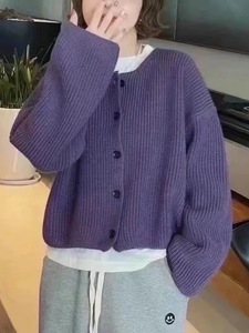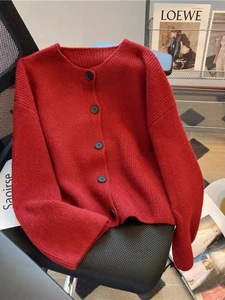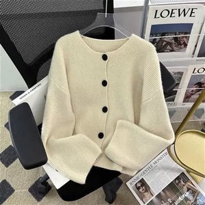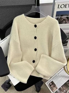 2025新款无领针织开衫毛衣女秋冬韩版单排扣低领外穿上衣慵懒风