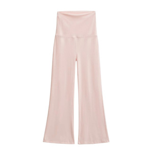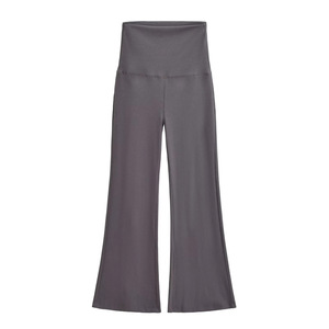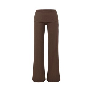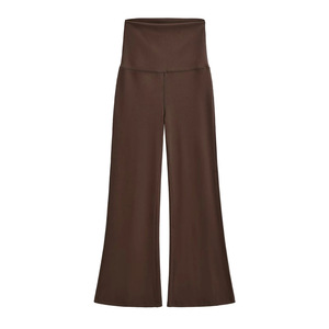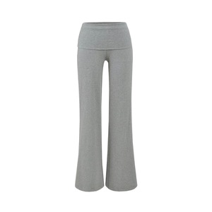 美式纯色辣妹设计低腰翻边微喇叭裤女休闲运动瑜伽健身弹力长裤