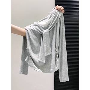气质假两件长袖t恤女春秋2025新款设计高级感收腰气质打底衫上衣