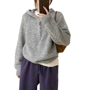 半拉链套头连帽毛衣女秋冬2025新款慵懒风软糯打底上衣加厚针织衫