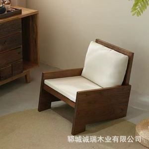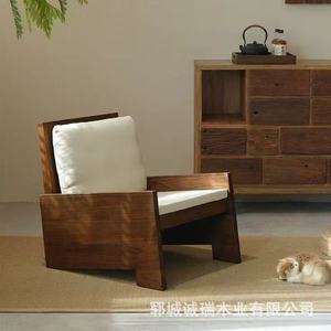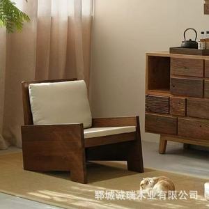 老榆木沙发椅诧寂风单人躺椅民宿实木落地靠背板凳榻榻米咖啡餐椅