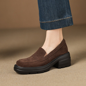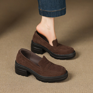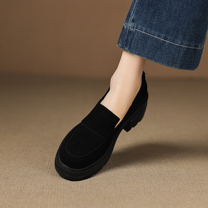 巨轻便~法式6cm厚底一脚蹬乐福鞋女2025春秋圆头粗跟懒人增高单鞋